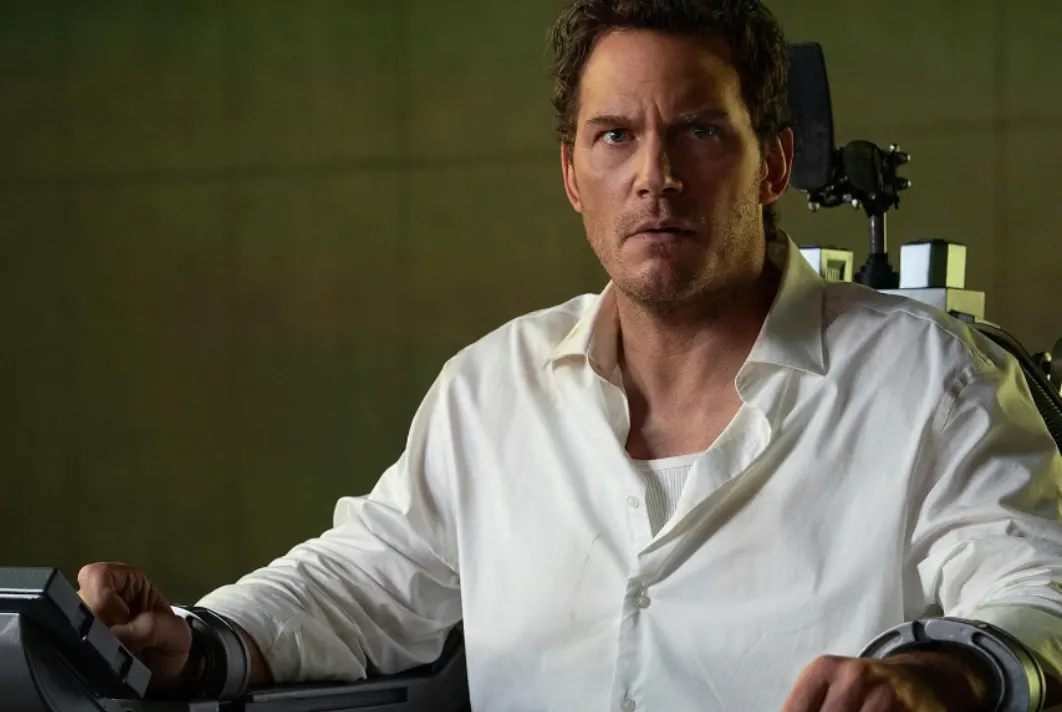 Mercy » met en scène Chris Pratt (dans le rôle de Chris Raven, un détective en procès) et Rebecca Ferguson (dans le rôle de Maddox, un juge IA qui décide du sort du détective en procès).